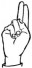 На ћирилици написано КАЋА РАДИВОЈЕВИЋ састоји се из 15 слова [?]. Исписано ћириличном једноручном азбуком за глувонеме: